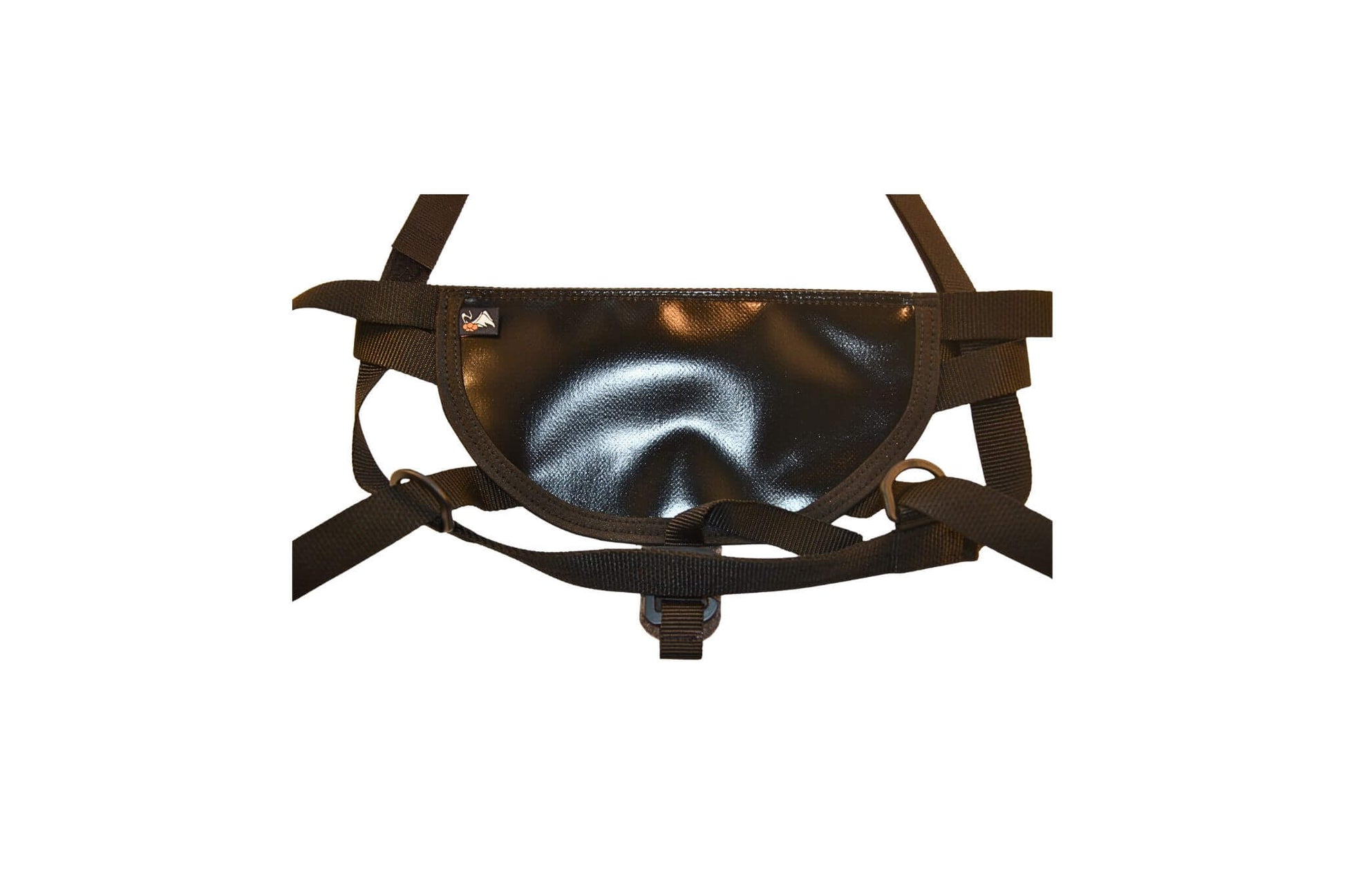 Danach das Gurtband hinten durch den hinteren Ring fädeln und am G -Haken festziehen.