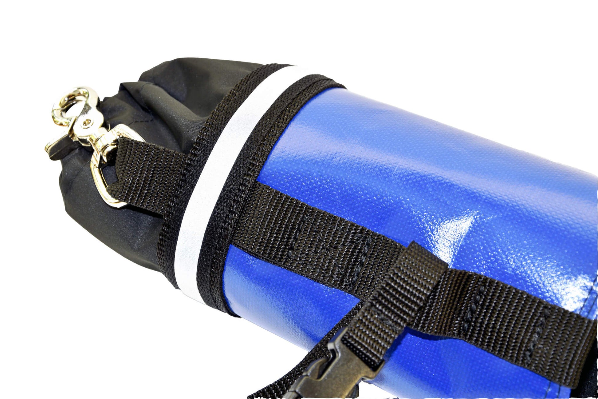 Durch die beiden längenverstellbaren Gurtbänder mit Schnellverschluss oben und unten sowie einer zusätzlichen Öffnung in der Mitte der längs angebrachten Stabilisierungsnaht für eine Befestigungsmöglichkeit kann der Schluckspecht vielfältig fixiert werden, sowohl vorne am Horn oder D-Ring als auch an den hinteren Befestigungsringen am Sattel.